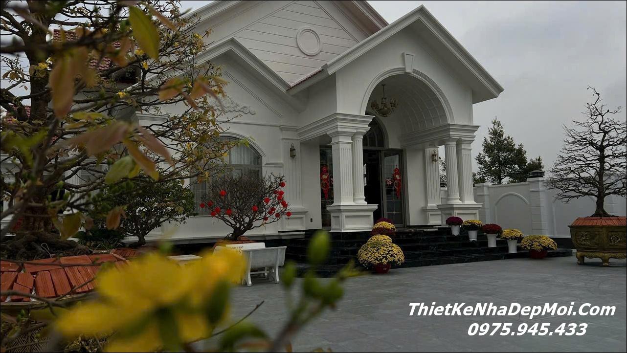 - Kiến trúc thiết kế biệt thự 1 tầng tân cổ điển mái thái lợp ngói đỏ