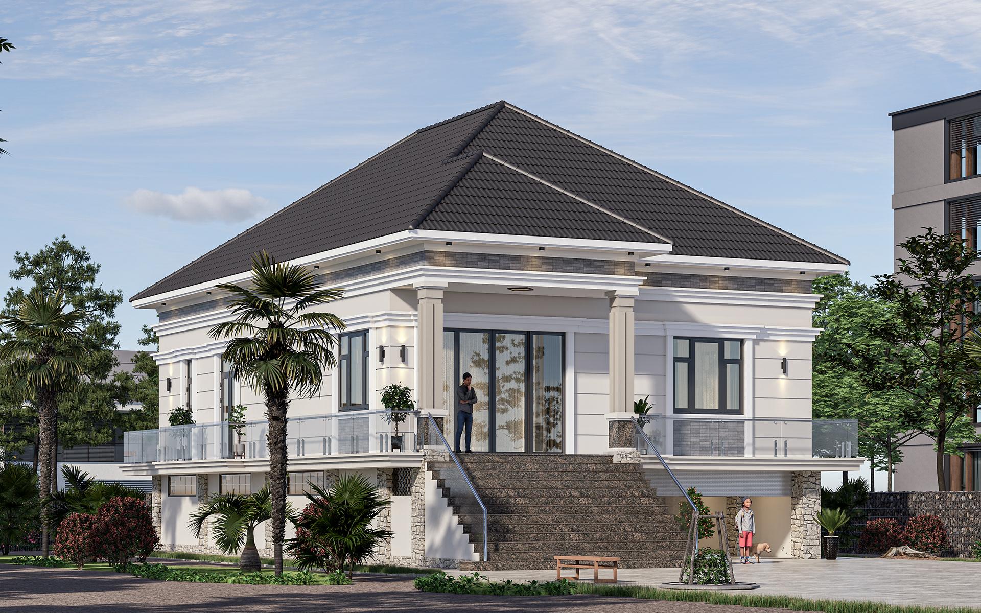 Ngoại thất mẫu nhà sàn cấp 4 có tầng hầm 120m2