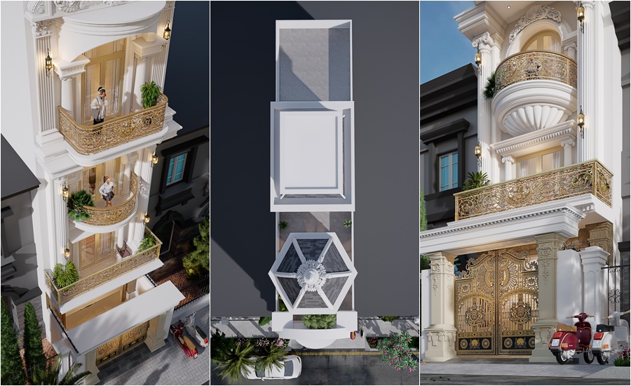 Cận cảnh kiến trúc nhà mặt tiền 4m cổ điển Pháp