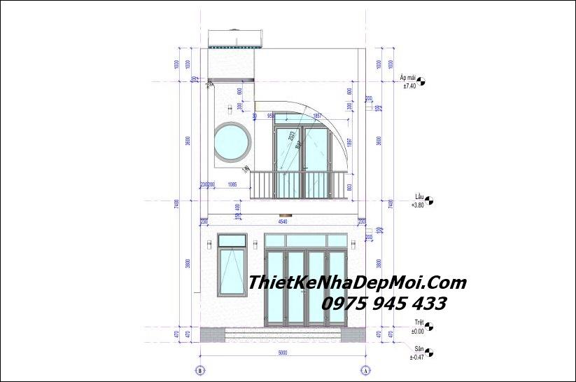 Bản vẽ kiến trúc nhà ống 2 tầng 5x12m mặt tiền phố